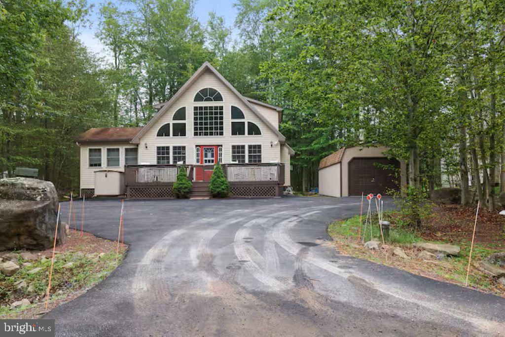 Welcome to 7118 Winnebago Drive, your perfect four-season retreat in the Arrowhead Lakes community in the Poconos. Located in a quiet, gated neighborhood known for its security and “Gold Star” status, this spacious 4-bedroom, 2-bathroom home is ideal for both relaxing getaways and entertaining. With a versatile loft area featuring a sofa sleeper, the home comfortably accommodates up to 10 guests. The main level offers two bedrooms, a full bathroom, and a bright, open-concept living space. The well-appointed kitchen includes a stove, microwave, dishwasher, refrigerator, ample cabinetry, and generous counter space. A large closet houses a full washer and dryer, along with additional shelving for storage. The dining and family room boast soaring two-story vaulted ceilings and a stunning wall of windows that flood the space with natural light. A gas fireplace with a beautiful stone surround creates a cozy atmosphere for cooler evenings. Just off the dining area, a bonus room is currently set up as a game room—perfect for entertaining. Upstairs, you’ll find two additional generously sized bedrooms, a second full bathroom, and a spacious loft area. Step outside to enjoy a well-maintained lot featuring a children’s play area, fire pit, two decks, an awning, exterior flood lighting, and a storage shed. A large 34-foot shed provides plenty of room for recreational equipment and outdoor gear. A new sewer grinder pump was recently installed. Conveniently located just 5 minutes from Choctaw Pool, with easy access to Minisink Pool and community tennis courts, this home offers full access to Arrowhead Lakes’ exceptional amenities, including: 3 swimming pools, 2 lakes, multiple beach areas and parks, community center with billiards room, fitness center, and banquet hall, year-round activities and events. The community’s gated security adds an extra layer of comfort and value. Ideally situated near major highways, this home offers easy access to Philadelphia, New Jersey, and New York, as well as nearby attractions like casinos, ski resorts, indoor water parks, golf courses, and outlet shopping. Come experience this incredible escape for yourself. Owner is a licensed Realtor.